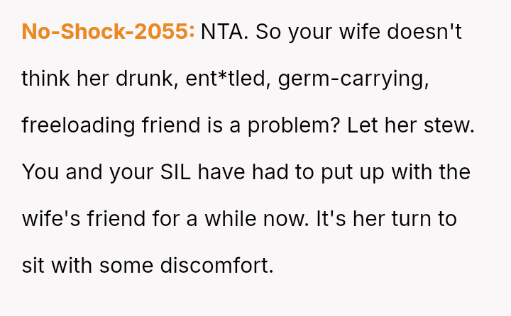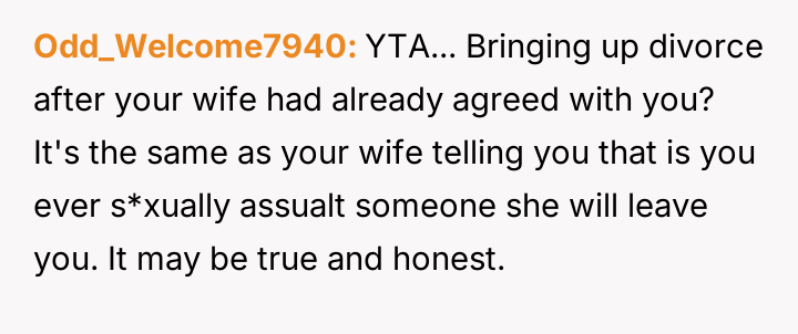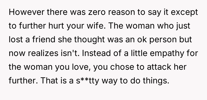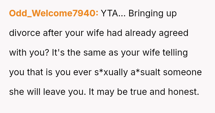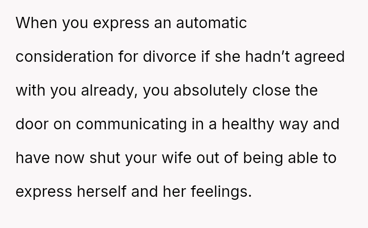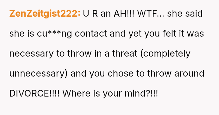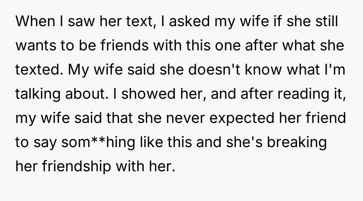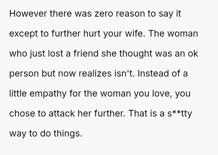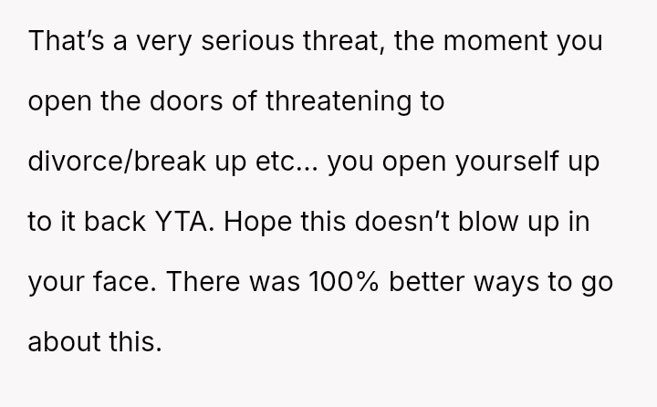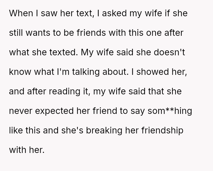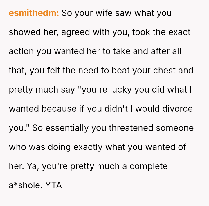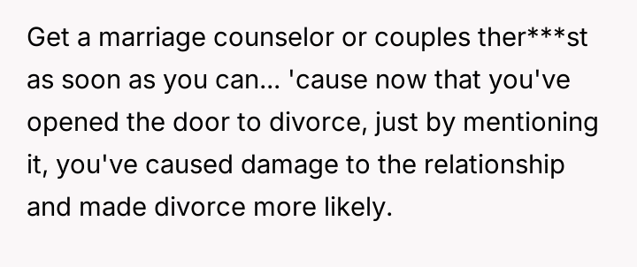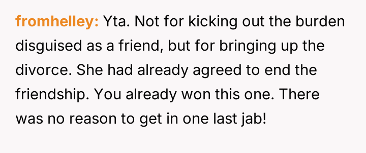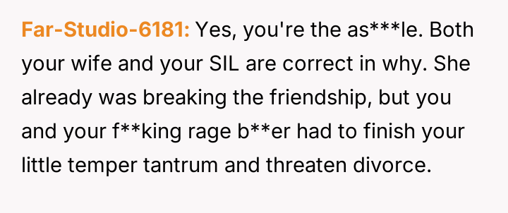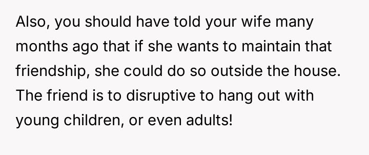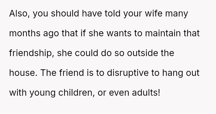 However, the conflict escalated when the OP introduced the threat of divorce to enforce their boundary regarding the friendship, causing significant marital strain despite the friend's unacceptable actions.