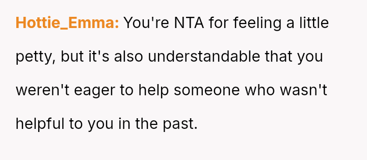 This situation highlights the tension between the desire for community support and the feeling of being wronged by a specific past action.