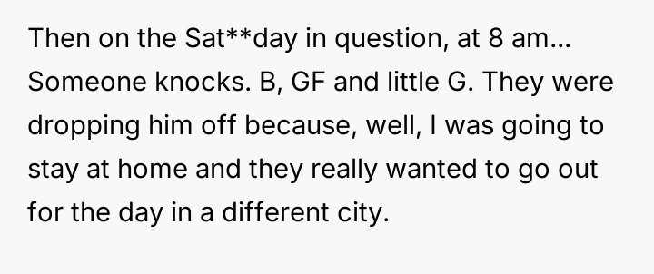 Given the deliberate v***ation of the OP's stated unavailability and the emotional manipulation involving their son, was the OP justified in immediately sending the child back, or should the desire to avoid disappointing the toddler have overridden her firm boundary for that specific weekend?