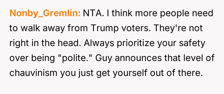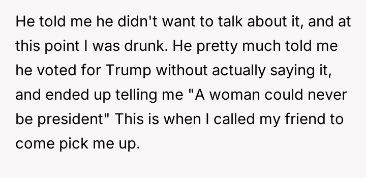 AITA I ditched a date after he told me “A woman could never be president”
