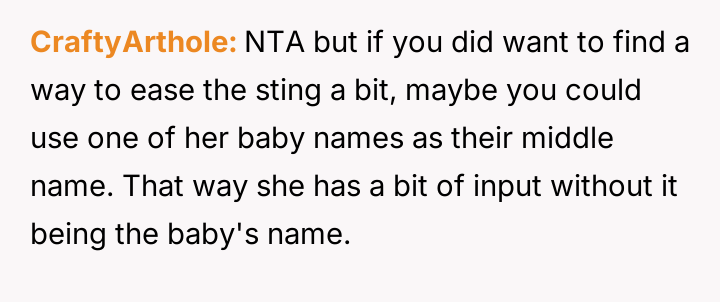 Is the OP justified in firmly setting a boundary that only he and his wife will name their child, prioritizing parental autonomy over accommodating the sister's emotional needs regarding her inability to have children, or is the OP being unnecessarily cruel by denying his sister a cherished, meaningful form of involvement in the next generation?