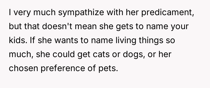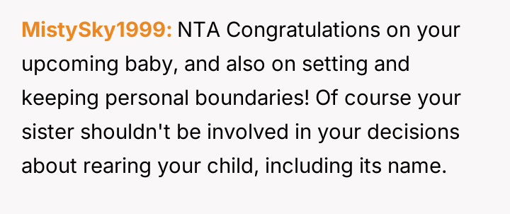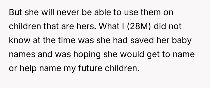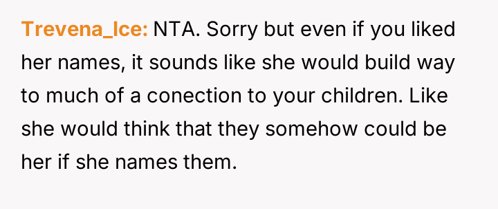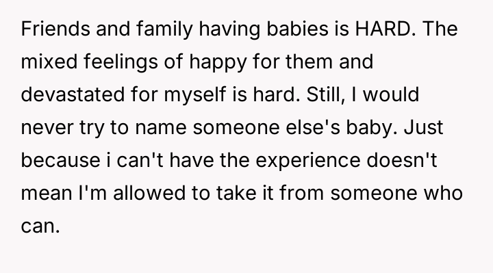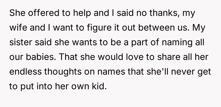 AITA for telling my sister who can't have kids that she does not get to be a part of naming mine and my wife's babies?