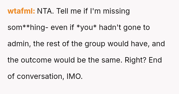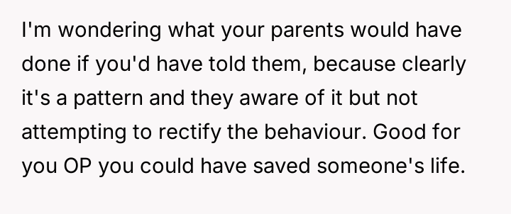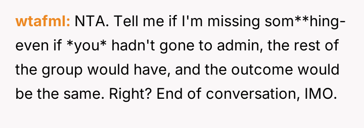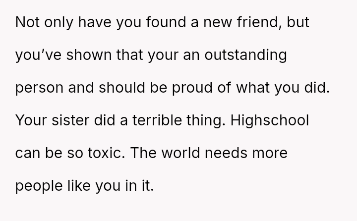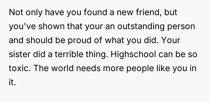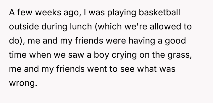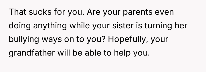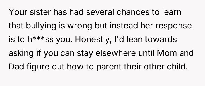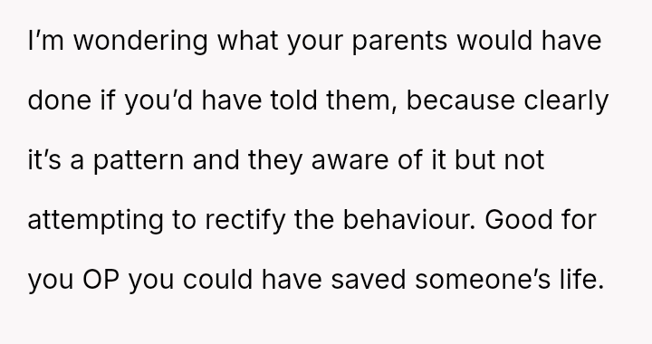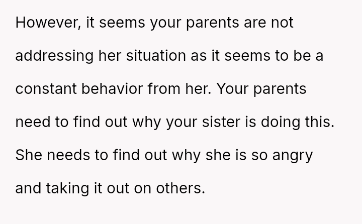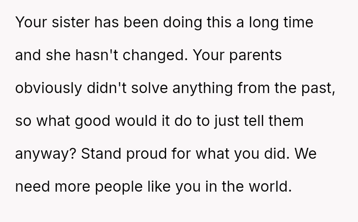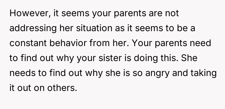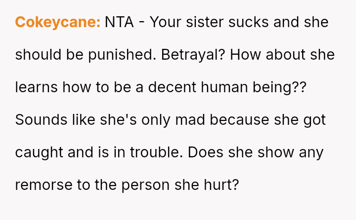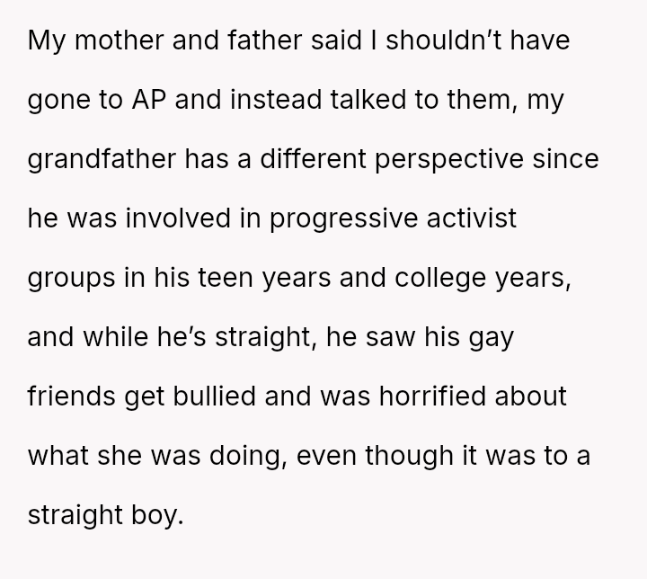 While the OP and his friends feel validated in protecting a victim, his parents view this action as a betrayal of their sibling bond.