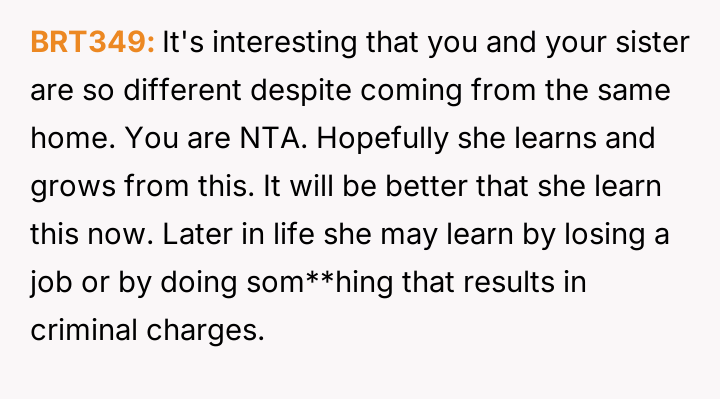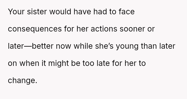 Does holding a sibling accountable for serious misconduct outweigh the immediate impact on family unity?