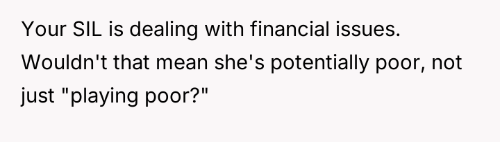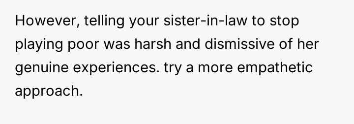AITA for telling my sister-in-law to stop “Playing poor” around my kids?