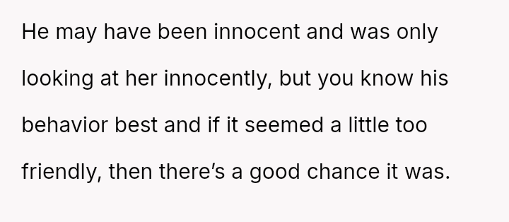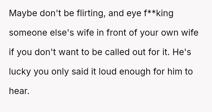 Given the OP's clear insecurity about her husband's reaction to another woman versus his behavior toward her, the core question remains: Is it justifiable to use aggressive, public confrontation to enforce perceived relationship boundaries when feeling threatened, or does such an action immediately erode the trust and respect needed to address the underlying issue constructively?