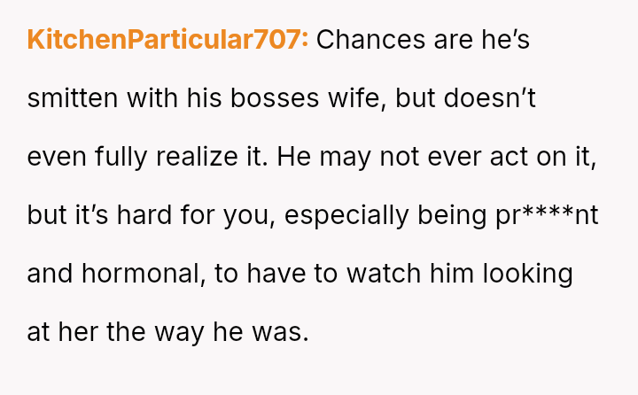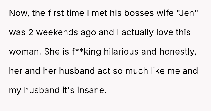The original poster (OP) reacted strongly and emotionally to witnessing her husband's overly enthusiastic attention towards their boss's wife, feeling insecure and disrespected in the moment.