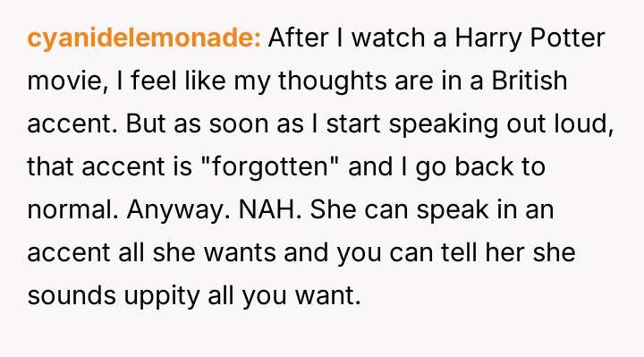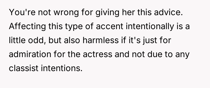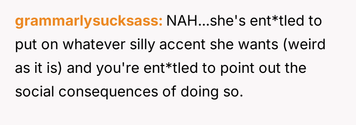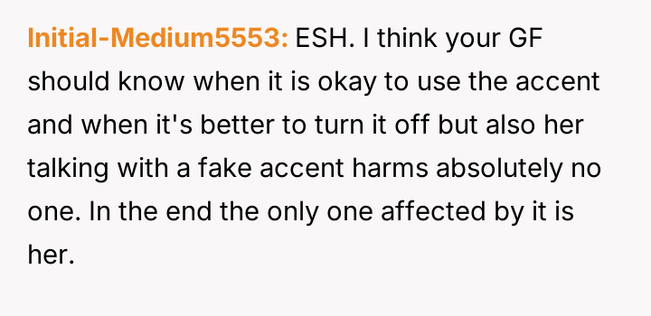 Is the OP justified in telling his girlfriend that her adopted accent alienates people and makes her appear ent*tled, or is this an overreach into her personal expression, making him the as***le in this situation?