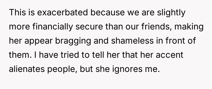 AITA for telling my girlfriend that her using her accent in public alienates people from her?