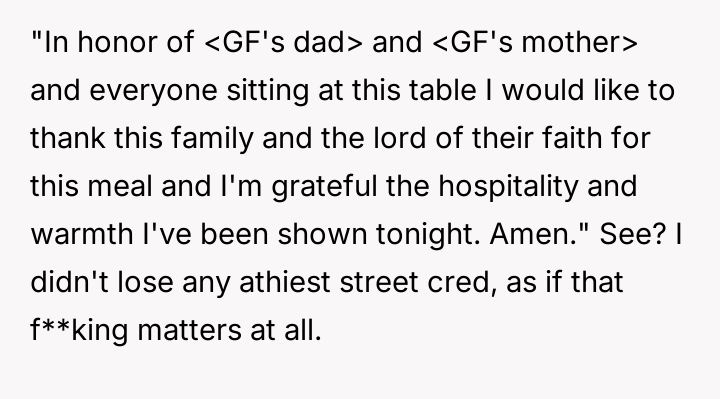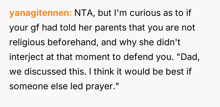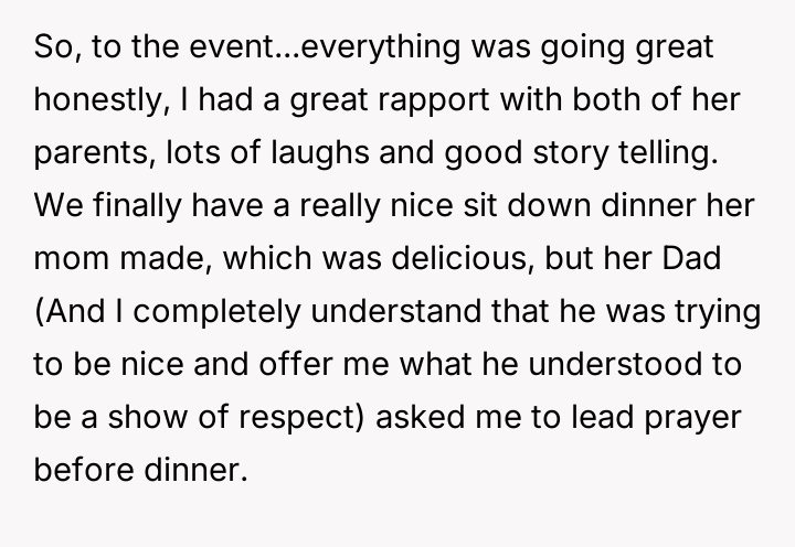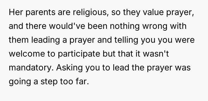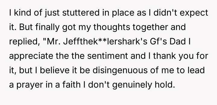 AITA for politely declining to lead a prayer at the request of my new GF's Father.