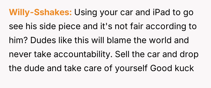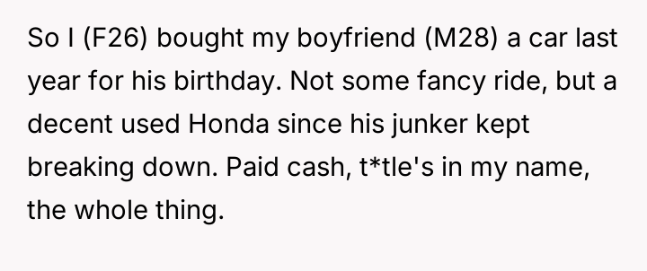 AITA for taking back the car I bought my boyfriend after I caught him cheating?