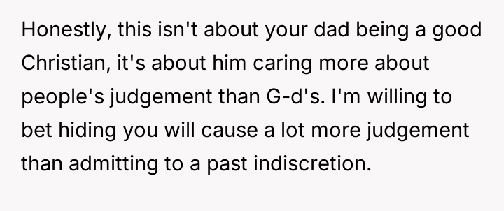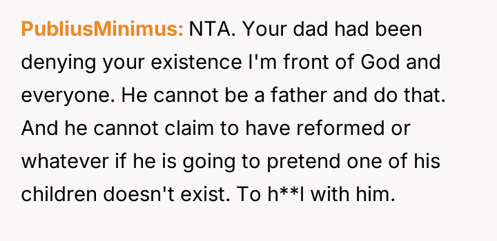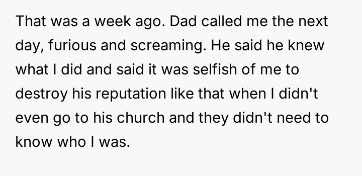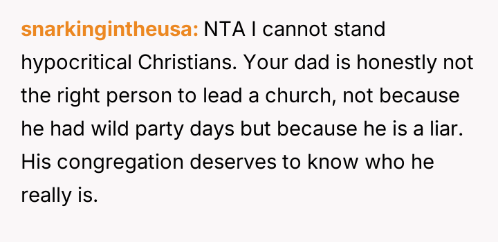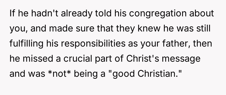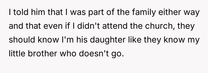 The original poster (OP) acted out of a clear desire for familial recognition and inclusion, directly challenging her father's attempt to compartmentalize her existence due to his public religious standing and past choices.