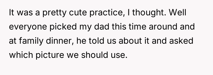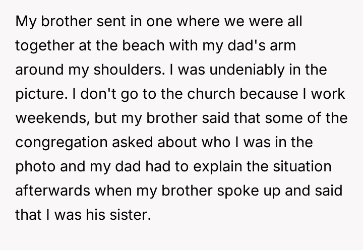 AITA for purposefully changing the picture submitted to my dad's church to include me?