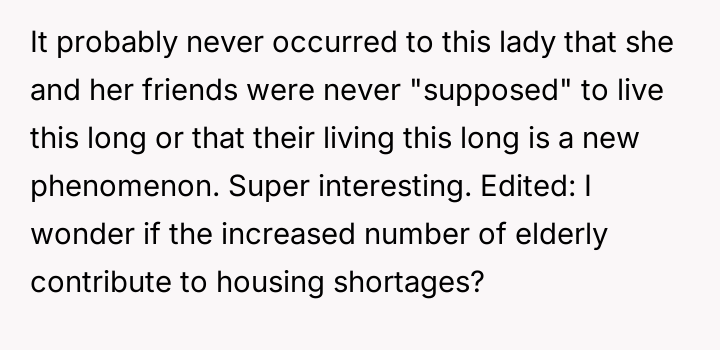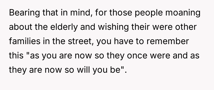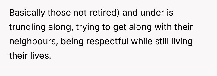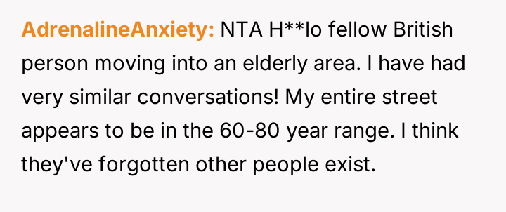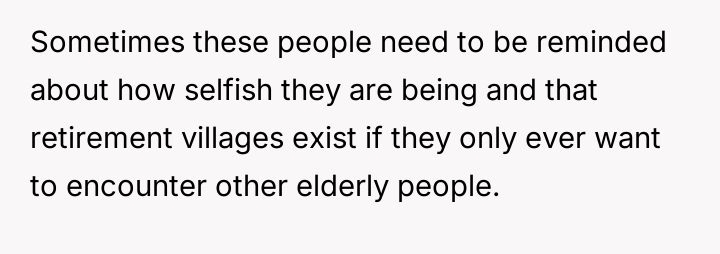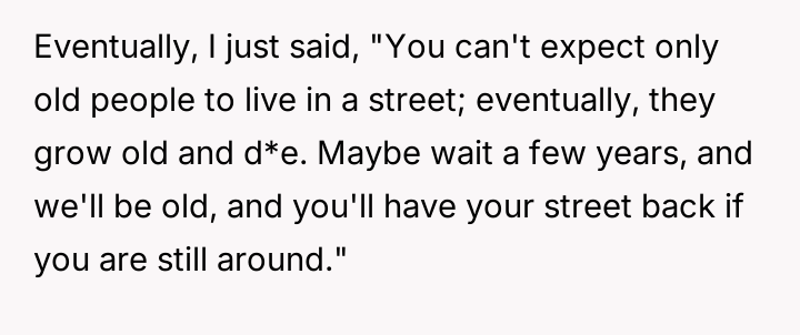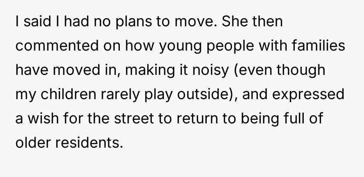 AITA for telling a neighbour she can't expect only old people to live in our street?