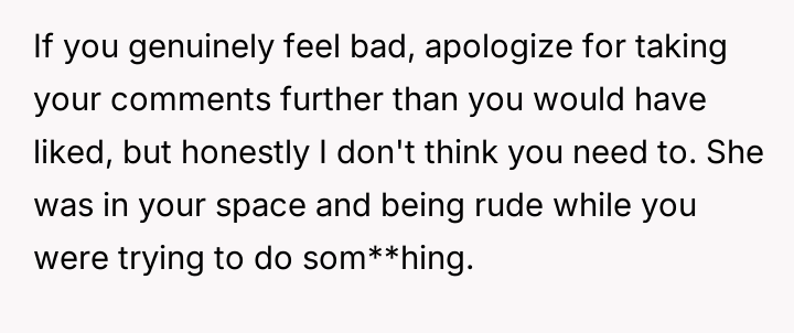 Was the OP's blunt statement a necessary defense against sustained rudeness, or an unacceptable overreaction that crossed a line of basic human respect?