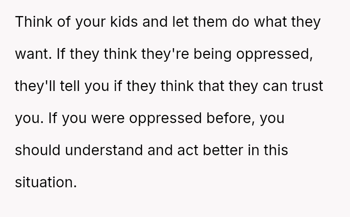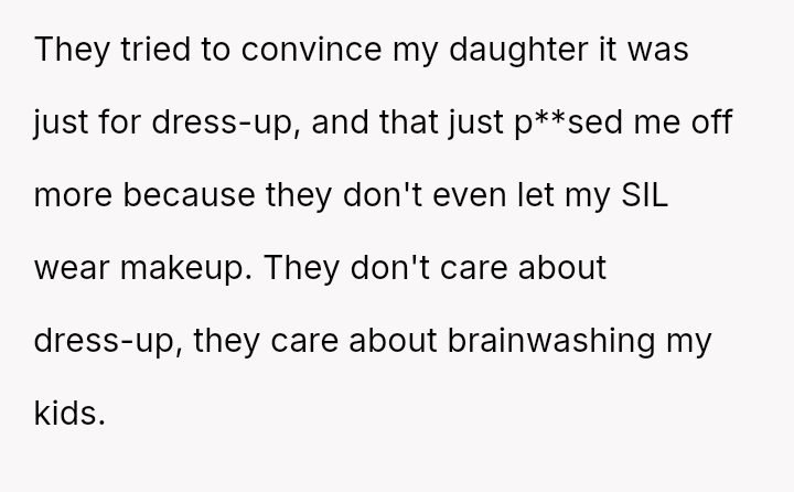 The central conflict lies between the OP's deeply held values concerning personal freedom and their past experience of oppression, versus the in-laws' desire to impose their cultural and religious expectations on the grandchildren, creating a significant breach of es**blished family boundaries.