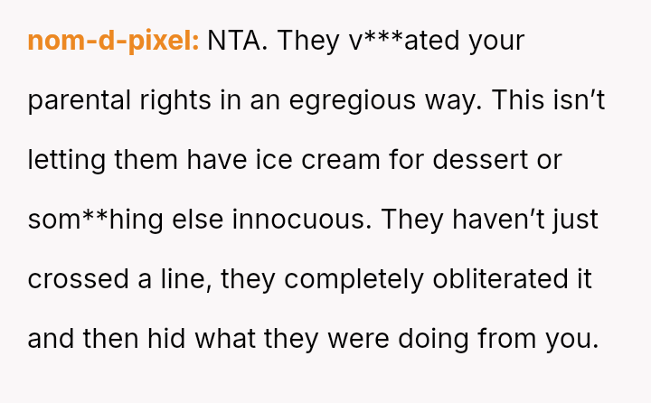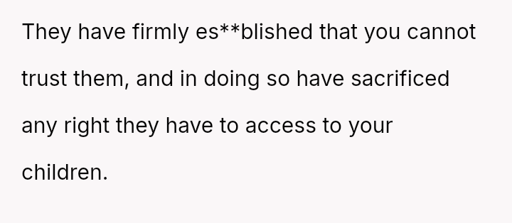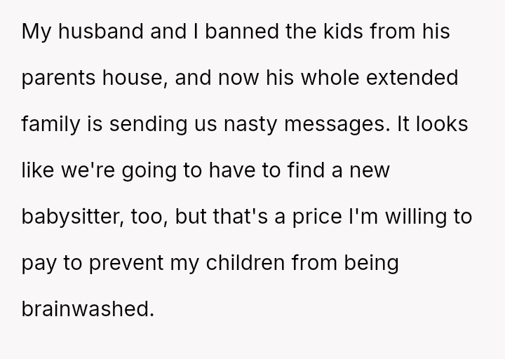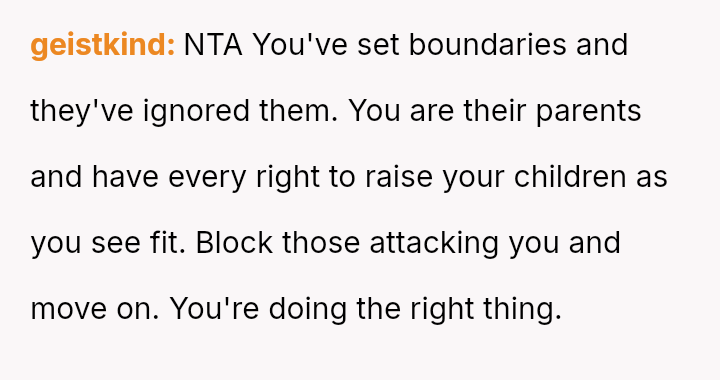 Considering the OP's drastic step of banning contact to protect their children's autonomy, is this protective measure justified, or has the conflict escalated beyond a necessary boundary setting?