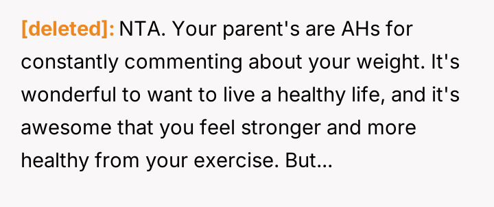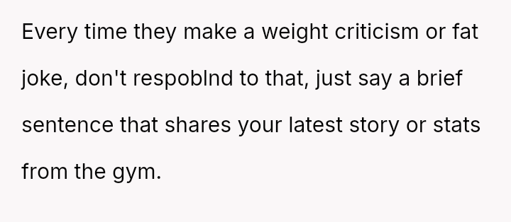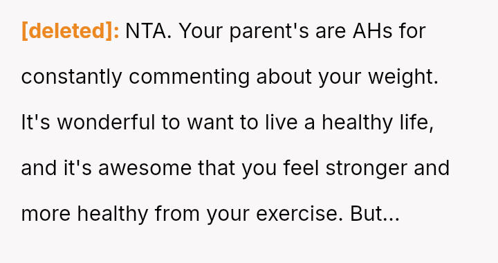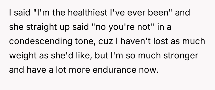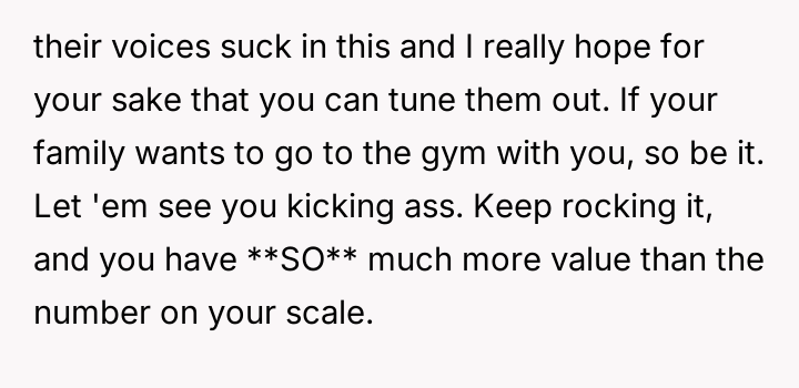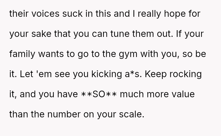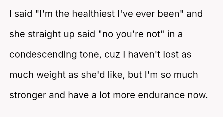 Instead of retreating, she reaches out—inviting her mother to join her in the gym, hoping to bridge the gap between perception and reality, and to show that strength and health come in many forms beyond just the numbers on a scale.