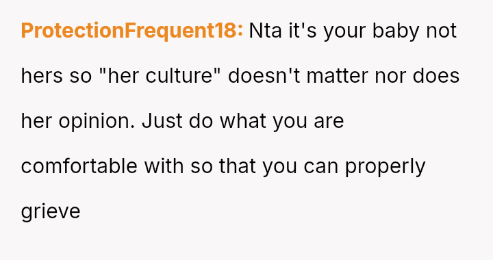 Which perspective deserves more consideration in this immediate crisis: the grieving parent's timeline or the cultural imperative for swift ceremony?