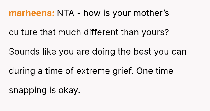 Given the immense emotional burden and the cultural differences in grieving, was the OP justified in aggressively demanding their mother pay for the funeral when she pressed for sp*ed, or did this outburst unfairly weaponize their financial struggle against the mother’s cultural desire to show respect?
