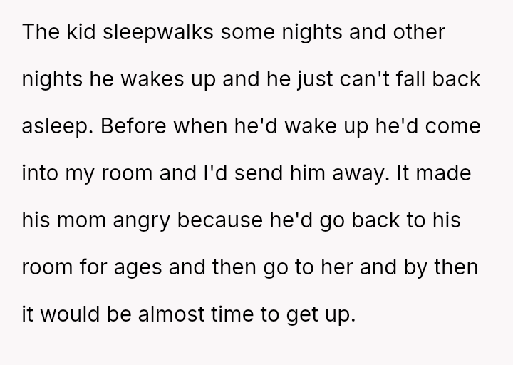The boy’s sleepwalking and restless awakenings shatter the quiet, forcing the teen to confront exhaustion and emotional turmoil.