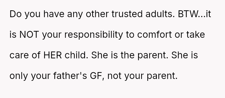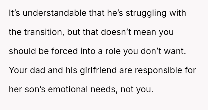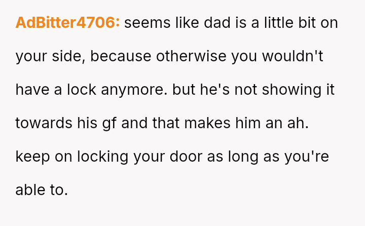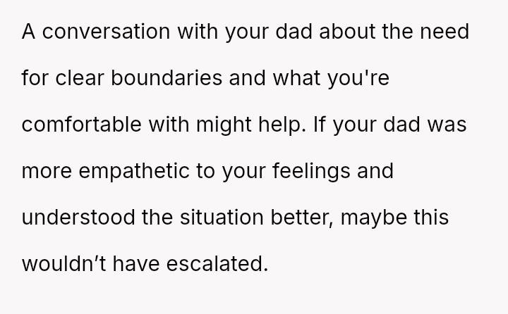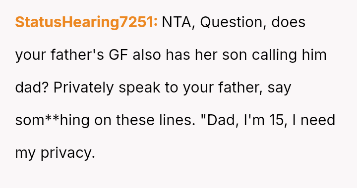 The original poster (OP), a teenager, is facing a significant conflict between their es**blished personal boundaries and the new domestic reality imposed by their father's relationship.