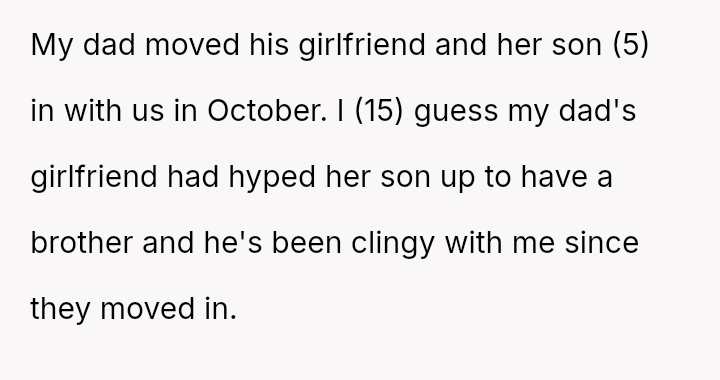 The arrival of their dad’s girlfriend and her young son has turned their home into a battleground of unwanted closeness and suffocating demands, where personal boundaries are ignored and pleas for space are met with frustration and guilt.
