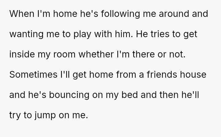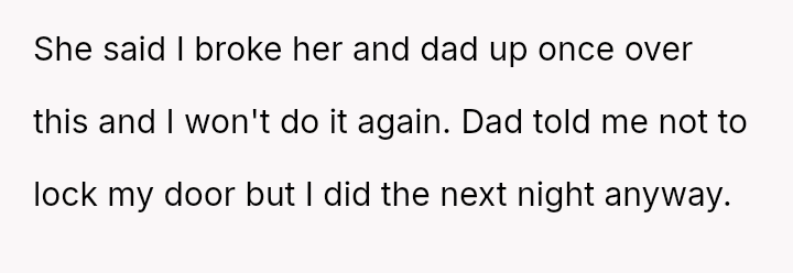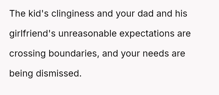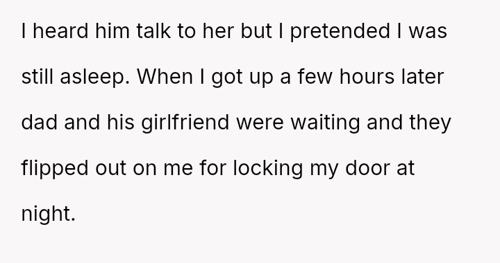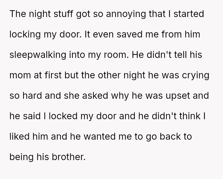 The OP's actions, such as refusing physical affection and locking their door, stem from a feeling of being overwhelmed by the clinginess and boundary v***ations of their stepbrother, leading to intense stress and negative reactions from the father and his girlfriend.