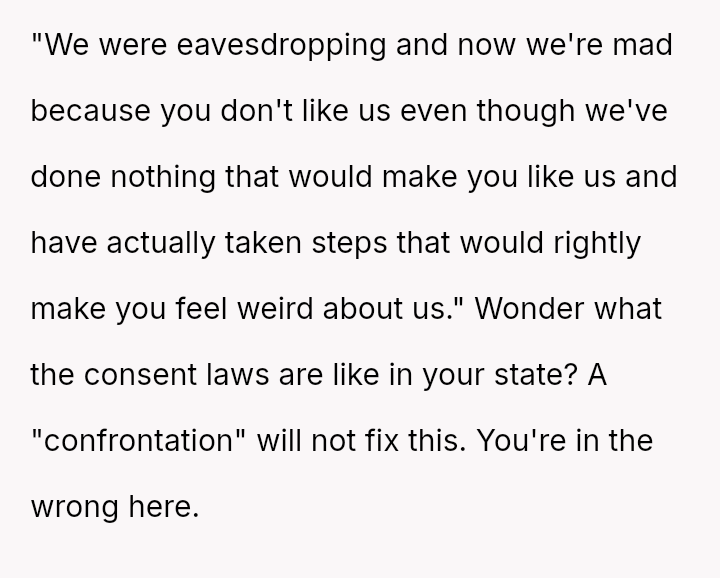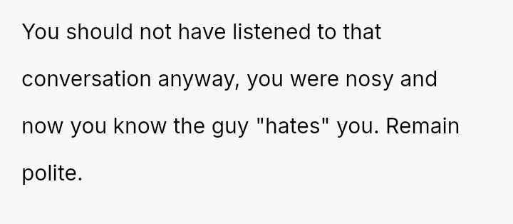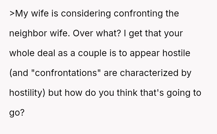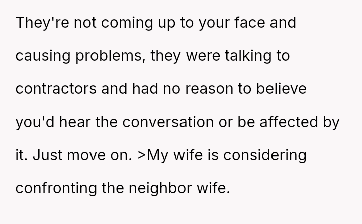 Should the OP and their wife confront the neighbor about the overheard comments to seek clarity and potentially an apology, or should they ignore the neighbor's private, negative remarks and maintain strictly polite, distant interactions moving forward?