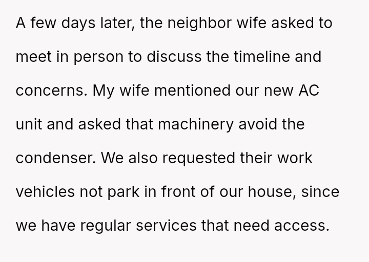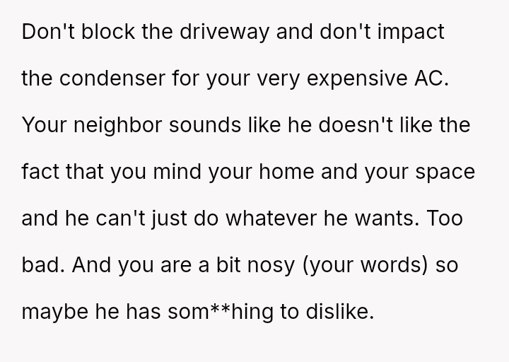 The presence of new machinery near a costly AC unit, the careful watchfulness captured by an old camera, and the subtle negotiations over parking hinted at the deeper tensions that simmer when personal investments meet the unpredictable rhythms of suburban life.