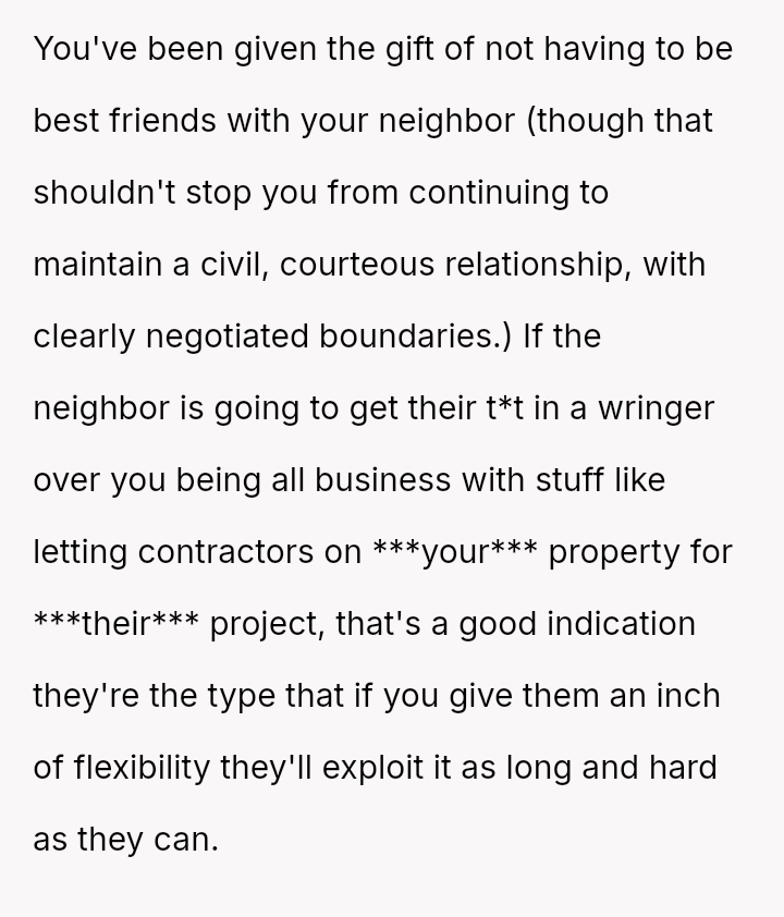 The central conflict arises because the OP believes they have acted reasonably and politely—even offering neighborly a*sistance with a liability waiver—while the neighbor harbors unwarranted, negative feelings, leading the OP to question how to address this one-sided hostility.