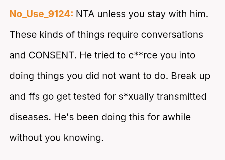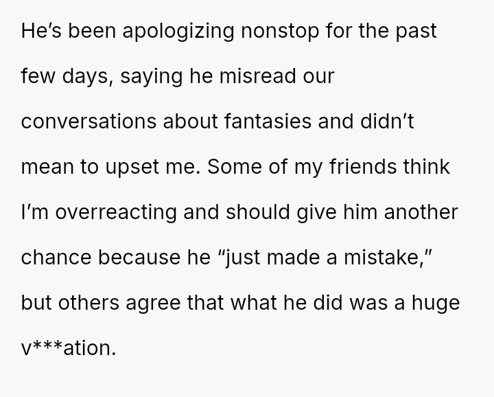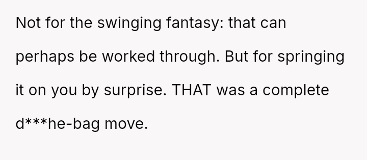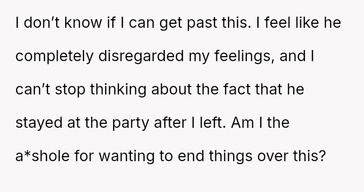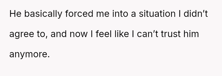 Given the severity of introducing a high-stakes s*xual scenario without consent and his subsequent reaction of prioritizing his social standing over her distress, is the OP justified in questioning the entire foundation of trust in the relationship, or is this incident truly just an isolated, albeit major, mistake that can be forgiven and repaired?