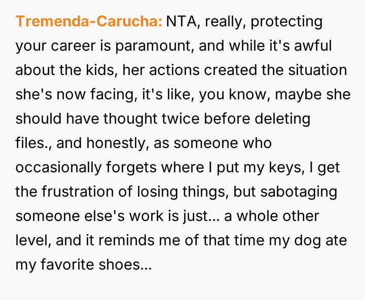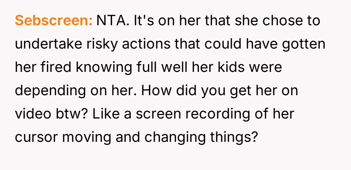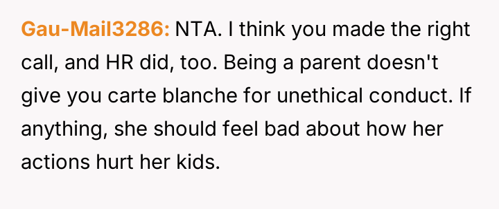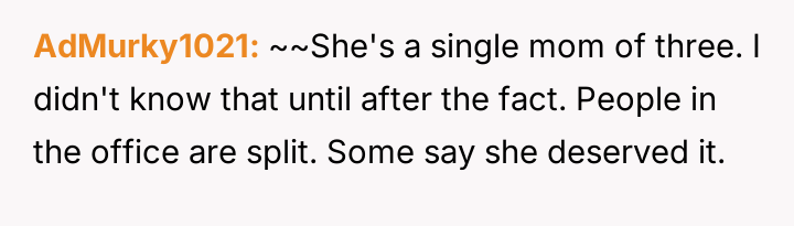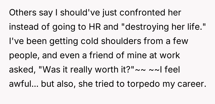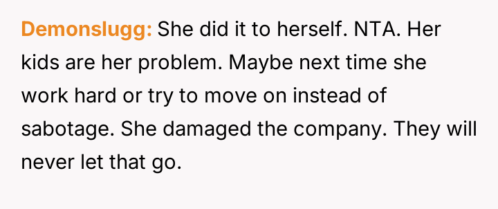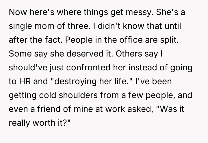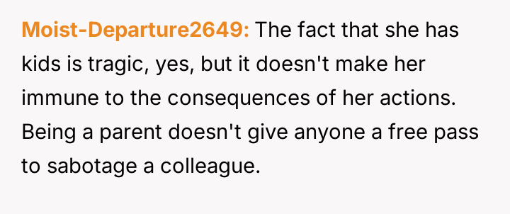 Getting my coworker fired after she tried to sabotage me — even though she has three kids?
