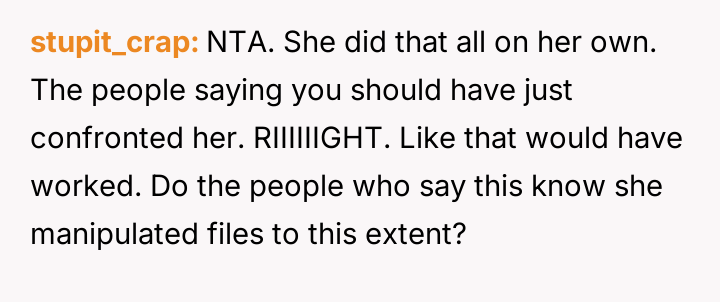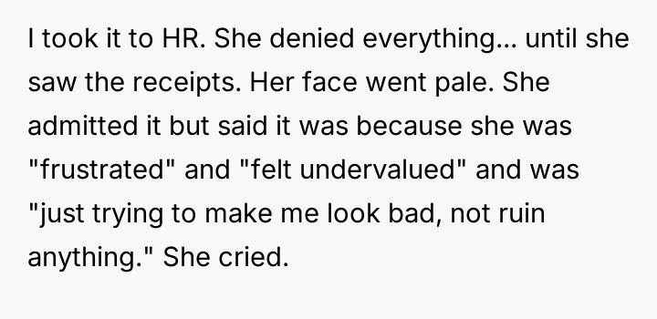 Given that the coworker engaged in deliberate, documented attempts to undermine the OP's job performance, was the OP correct in escalating the matter directly to Human Resources, or would a direct, private confrontation have been a more ethical first step, balancing professional protection against personal empathy?