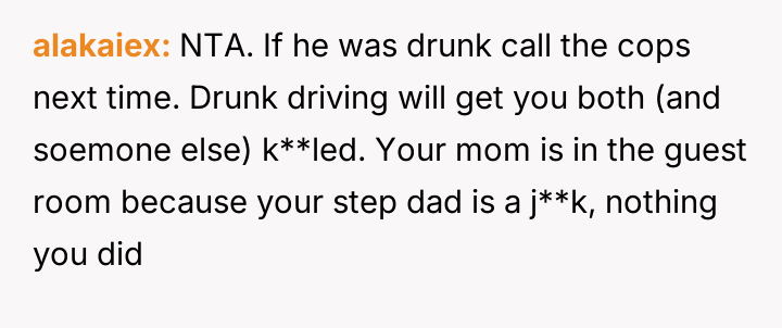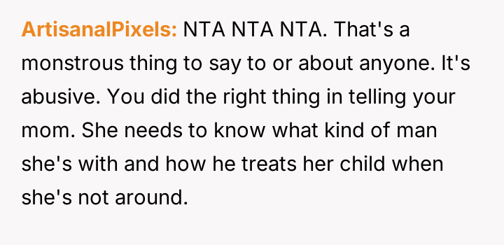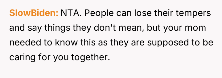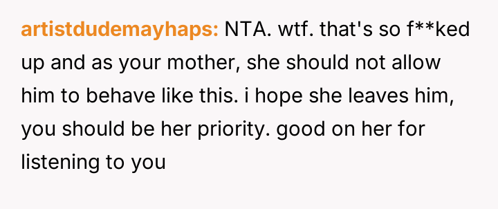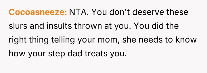 The original poster is dealing with the emotional fallout of a deeply hurtful comment made by their stepfather, leading to conflict between the parents.