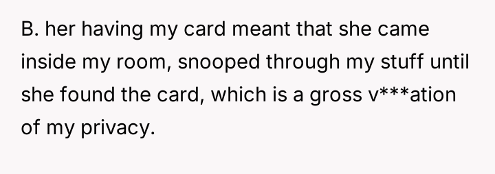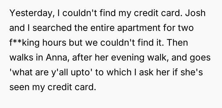 AITA for yelling at my roommate’s girlfriend because she hid my credit card and then claimed it was for my betterment?