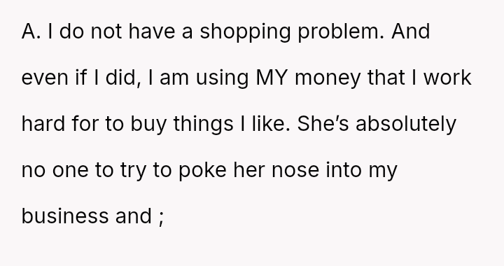 Given the v***ation of privacy and the unsupported accusation of a shopping addiction, was Anna's action justified by her intent to 'help,' or was it an inexcusable invasion of privacy and overreach into the OP's personal life and finances?