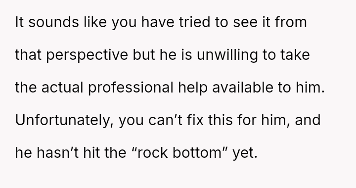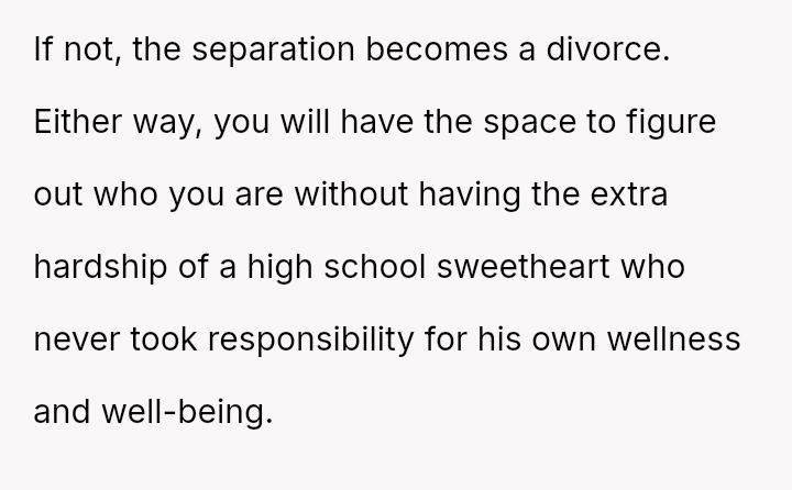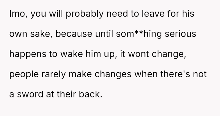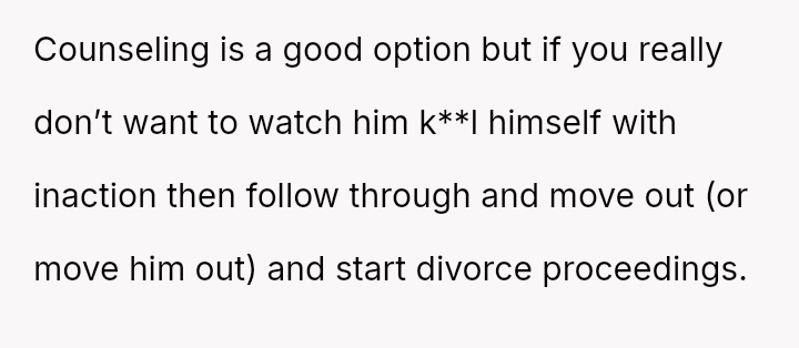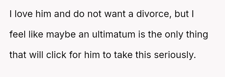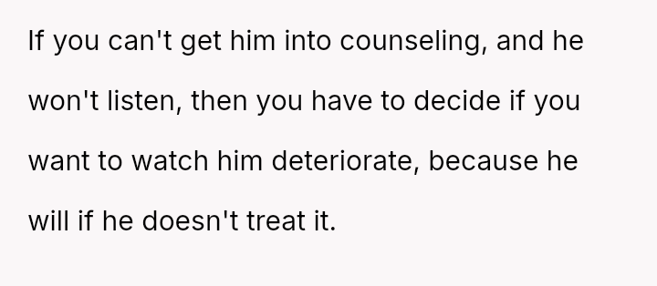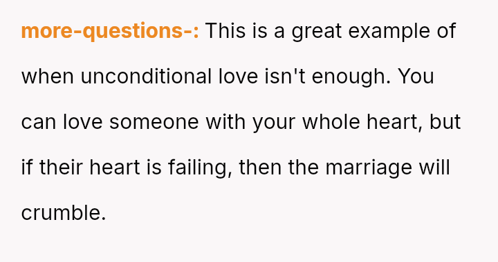 The original poster (OP) is caught in a painful situation, torn between her deep, unconditional love for her husband and the serious, life-threatening health risks he is creating through inaction.