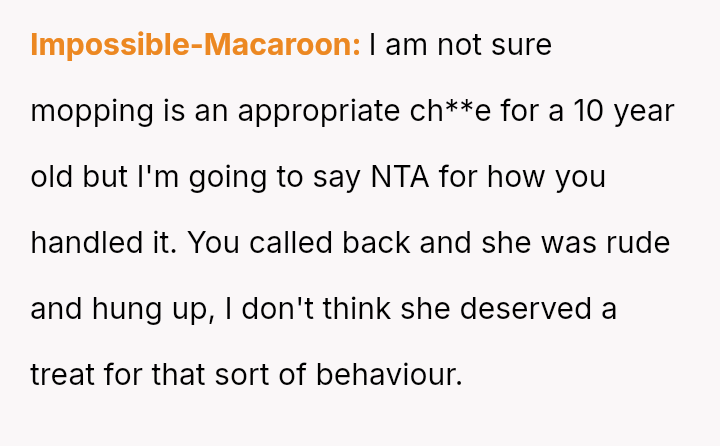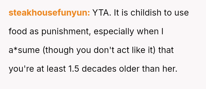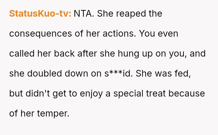 The OP responded to his daughter's rudeness by withholding a treat she desired, an action his wife later criticized as immature, highlighting a breakdown in handling the emotional fallout from the initial ch**e dispute.