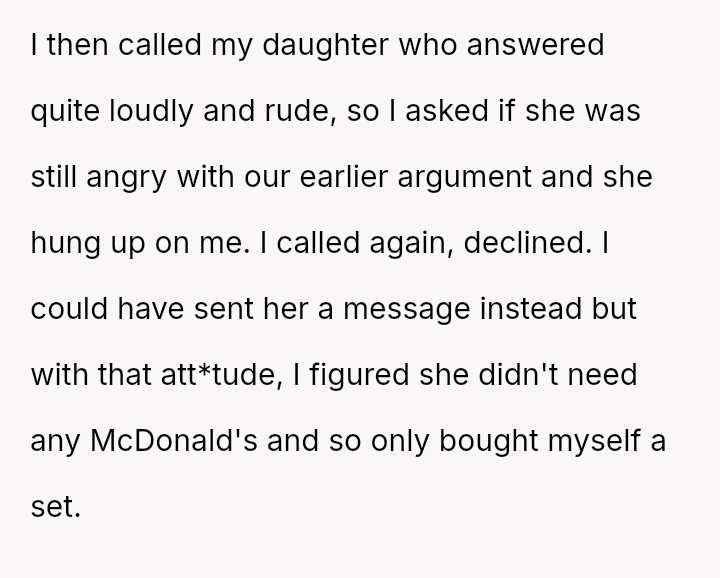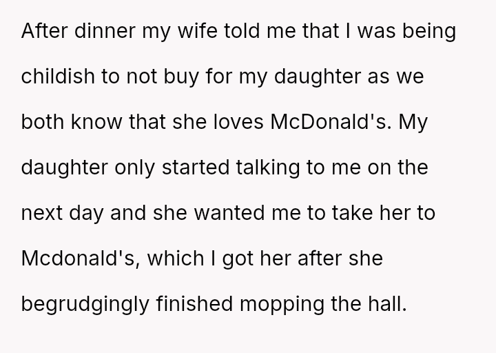 Should the OP have separated the ch**e compliance from the fast-food request, or was withholding the treat a necessary, if emotionally charged, form of boundary enforcement?