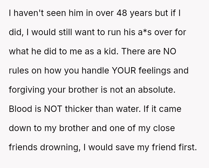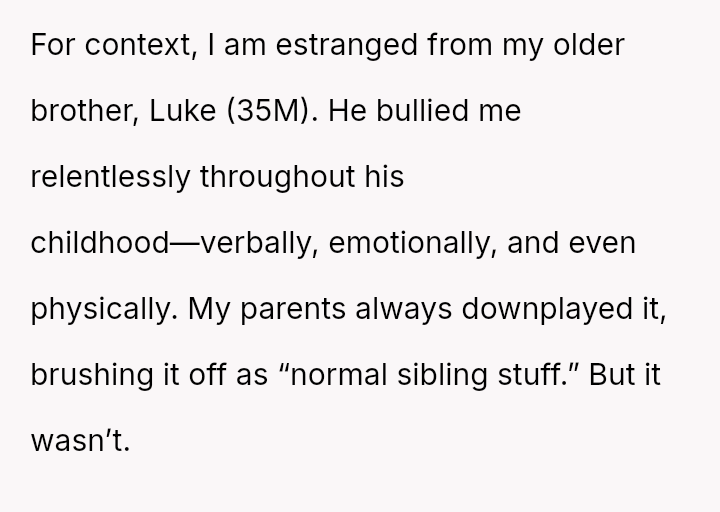 His childhood was marred by the torment of an abusive older brother, a pain his parents chose to ignore, forcing him to sever ties and seek peace in estrangement.