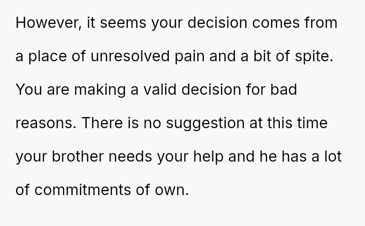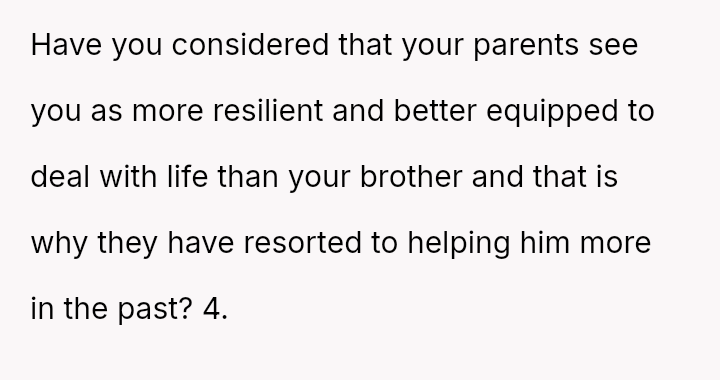 Given the history of perceived favoritism towards the brother, is the OP justified in placing a condition on his financial a*sistance to protect his own boundaries and emotional well-being, or does the act of helping parents necessitate unconditional support that overrides past grievances?