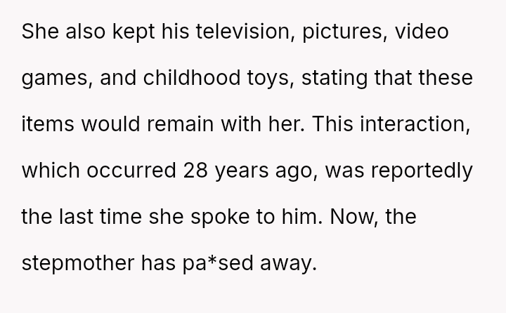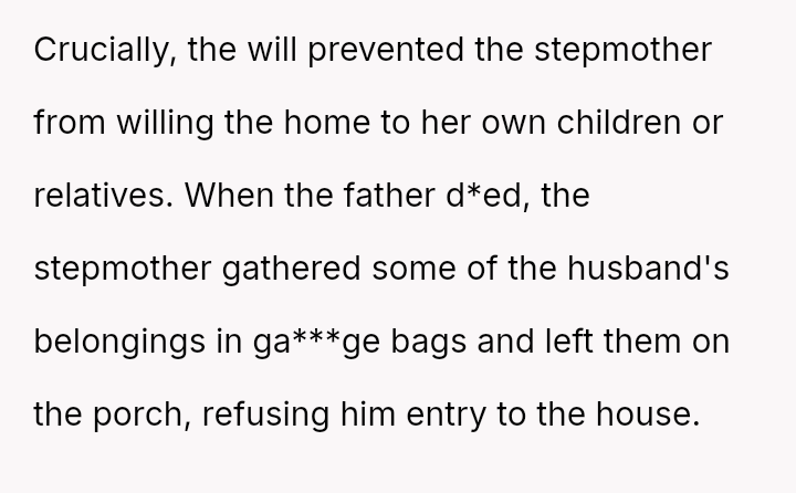 As the stepmother’s final chapter closes, the silent battle over a home—more than just walls and memories—unfolds. It’s a story of inheritance, trust, and the unspoken tensions that linger when the past refuses to rest.