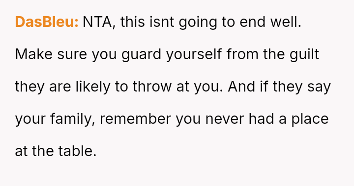 Readers must weigh the right to self-respect against the potential fallout of confronting deeply ingrained family roles.