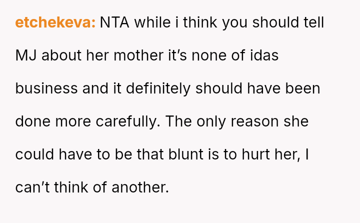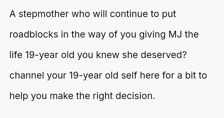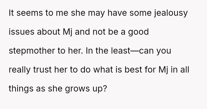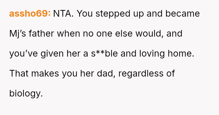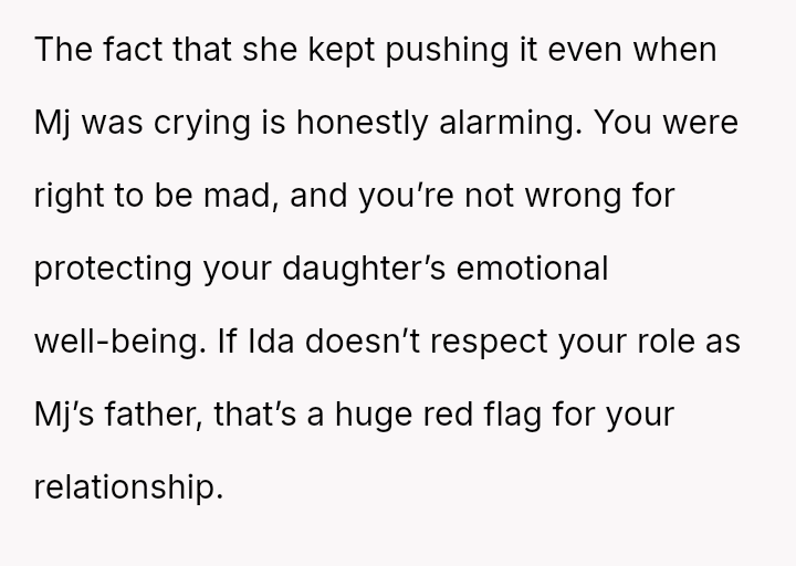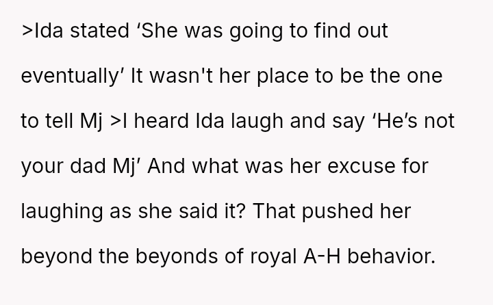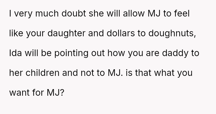 The OP es**blished himself as Mj's sole father figure out of necessity and love, creating a deep bond. Ida's immediate dismissal of this relationship dynamic has caused significant emotional distress and conflict.