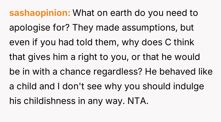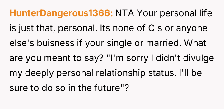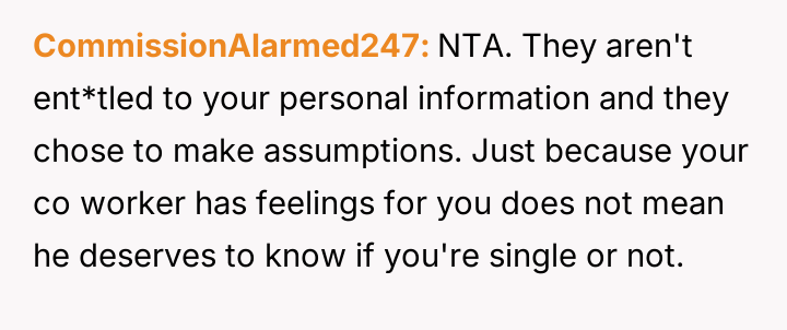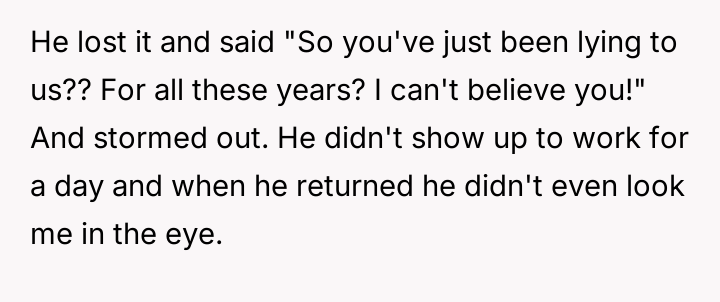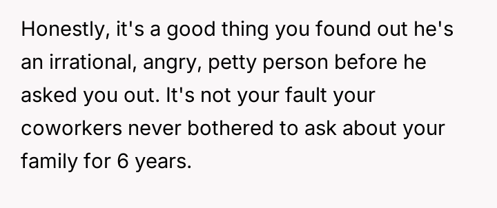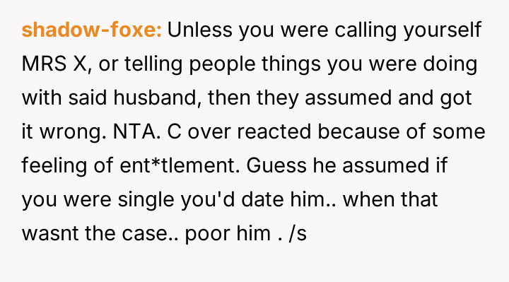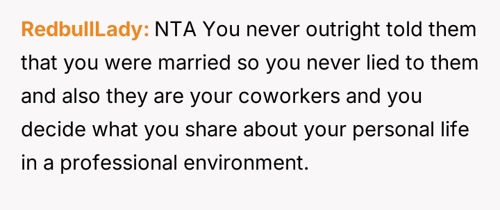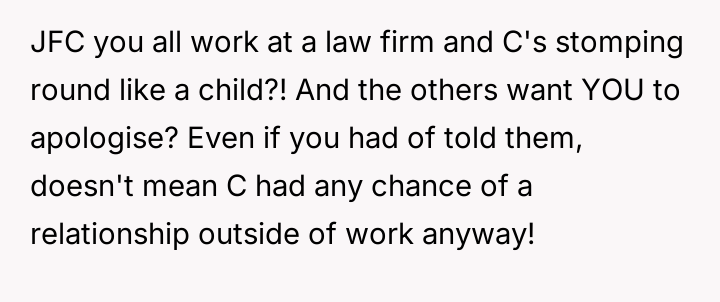The central conflict arose when her co-worker, C, who apparently harbored feelings for her, reacted with intense anger and a sense of betrayal upon learning the truth about her relationship status.
