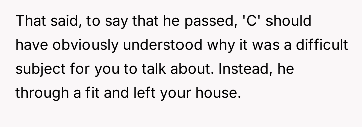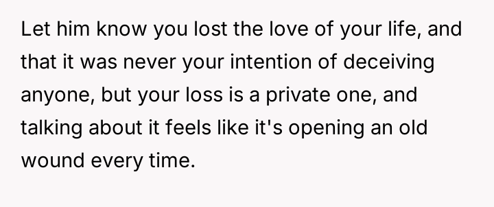 Is the OP obligated to apologize for maintaining a long-held personal practice that symbolized deep grief, or was the co-worker's overreaction justified by the perceived deception regarding her availability? Does the OP owe C an explanation or apology for his personal interpretation of her visible symbols?