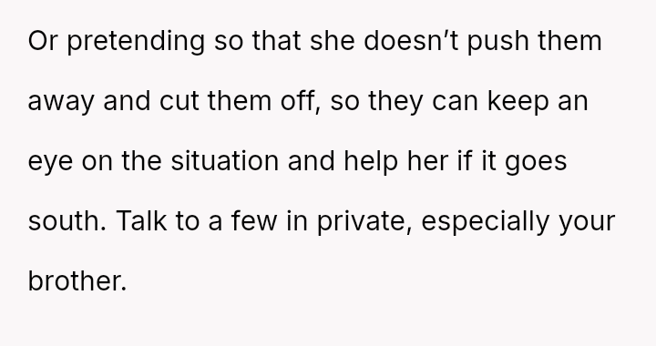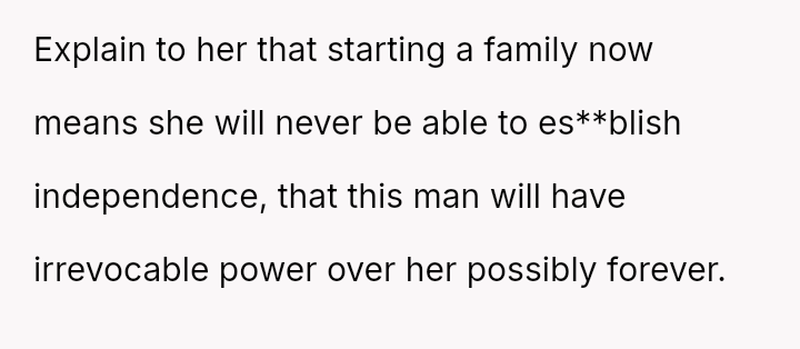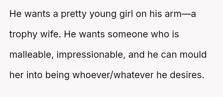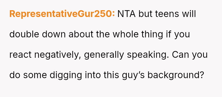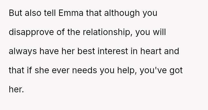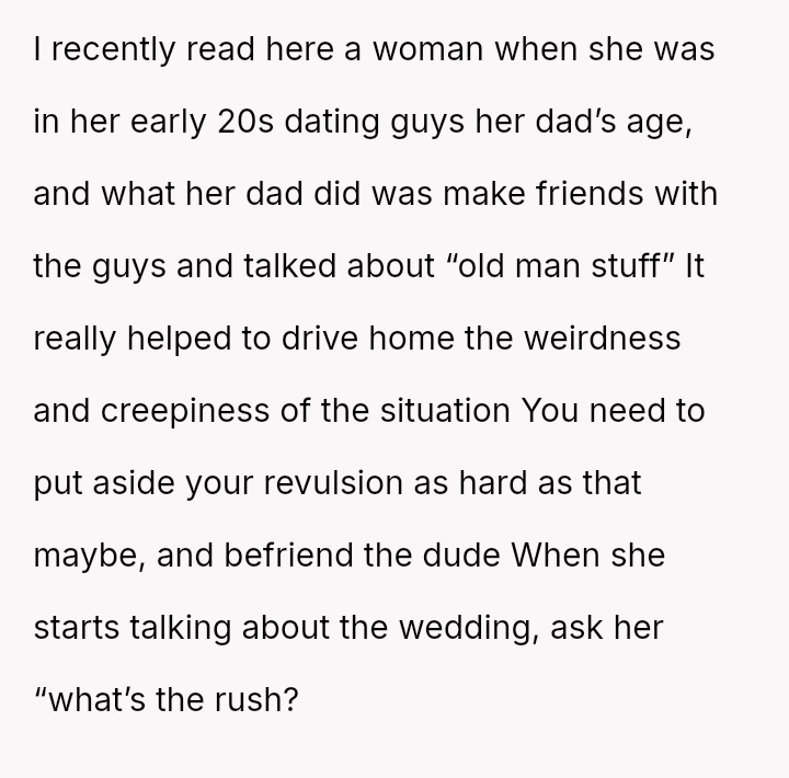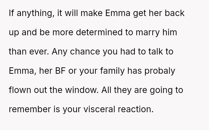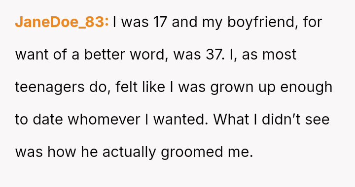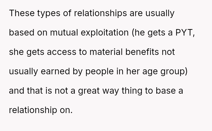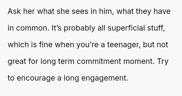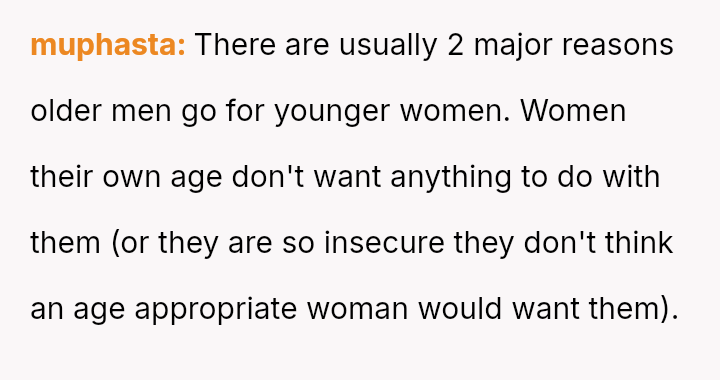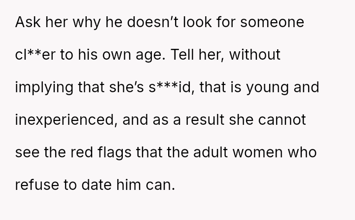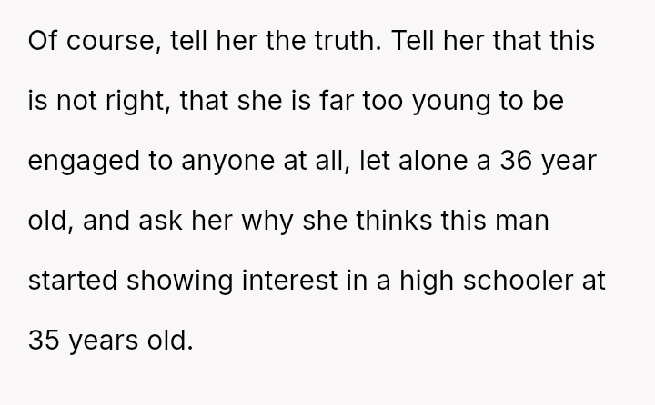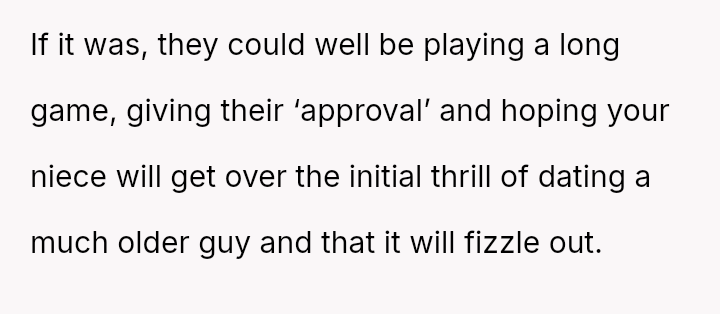 While the family focuses on the legality and the couple's happiness, the poster is focused on the potential for future harm and the perceived inappropriateness of the significant age difference.